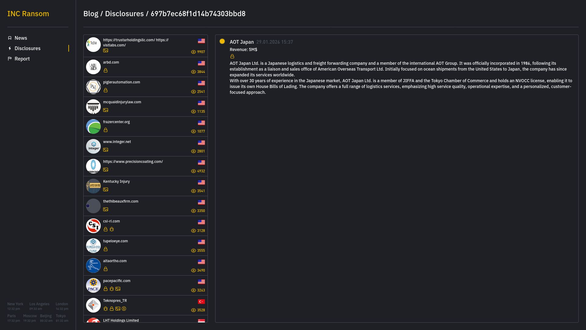 http://incblog6qu4y4mm4zvw5nrmue6qbwtgjsxpw6b7ixzssu36tsajldoad.onion/blog/disclosures/697b7ec68f1d14b74303bbd8Threat Group