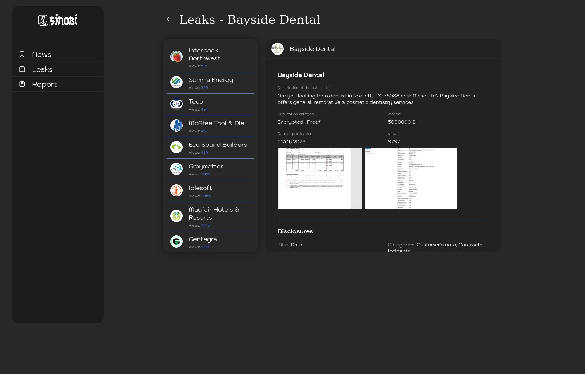 Leak Page Screenshot