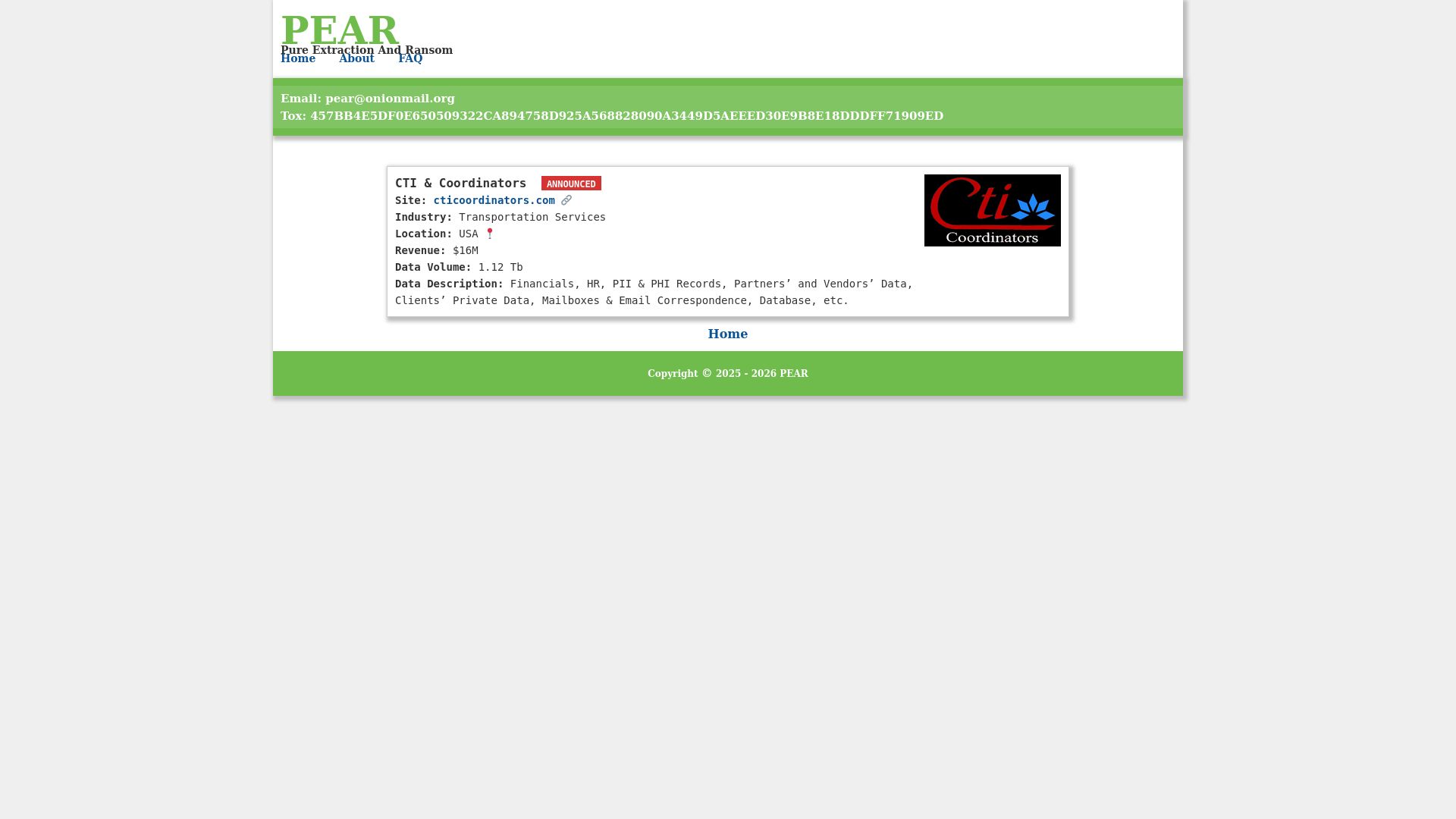 http://pearsmob5sn44ismokiusuld34pnfwi6ctgin3qbvonpoob4lh3rmtqd.onion/Companies/cticoordinators Site OnlineLast scanned 1h ago