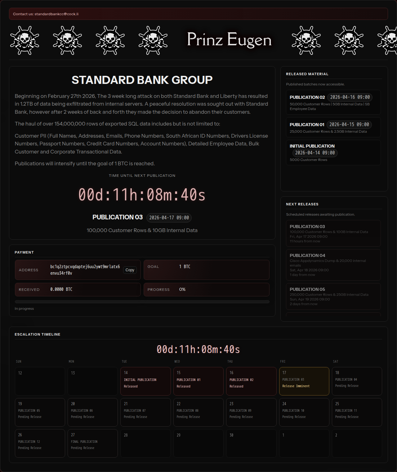 Beginning on February 27th 2026, The 3 week long attack on both Standard Bank and Liberty has resulted in 1.2TB of data being exfiltrated from internal servers.