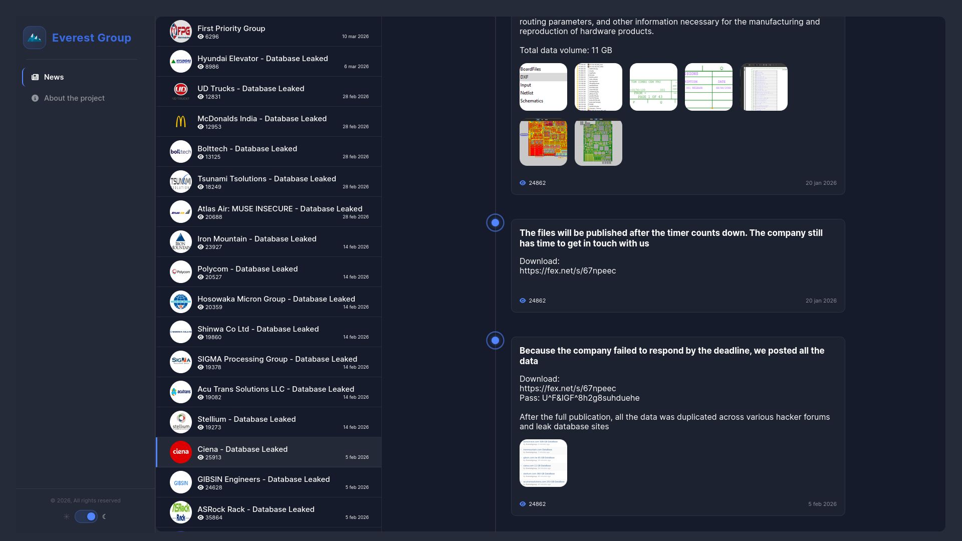 http://ransomocmou6mnbquqz44ewosbkjk3o5qjsl3orawojexfook2j7esad.onion/news/Ciena/ Site OnlineLast scanned 3h ago