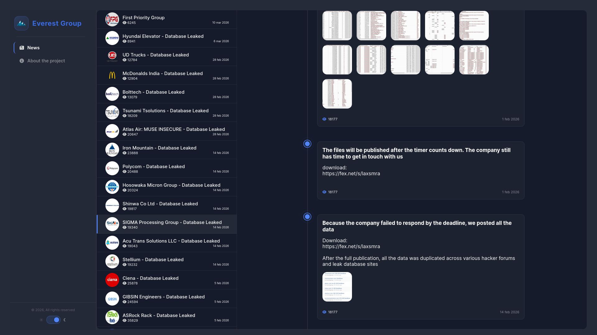 http://ransomocmou6mnbquqz44ewosbkjk3o5qjsl3orawojexfook2j7esad.onion/news/SIGMA_Processing_Group/ Site OnlineLast scanned 6h ago