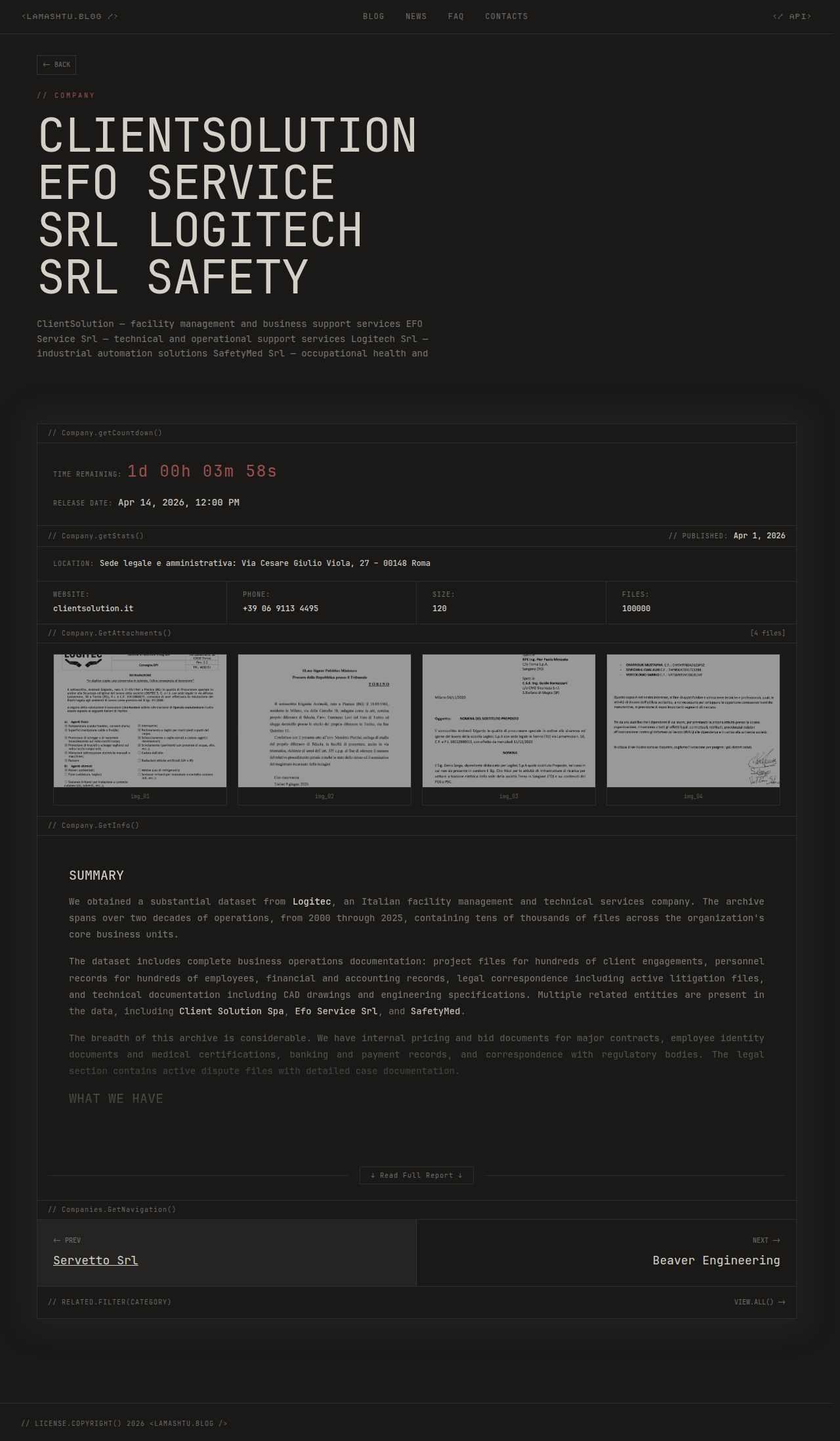clientsolution.it - ClientSolution — facility management and business support services EFO Service Srl — technical and operational support services Logitech Srl — industrial automation solutions SafetyMed Srl — occupational health and